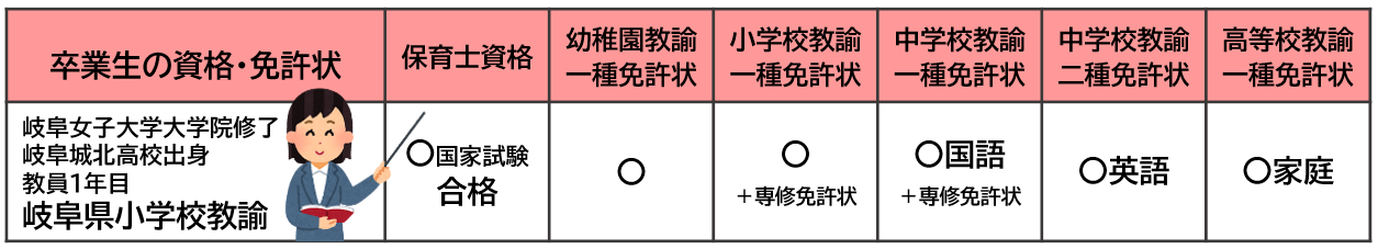 *保育士資格を持つ家庭科教諭(生活科学専攻)