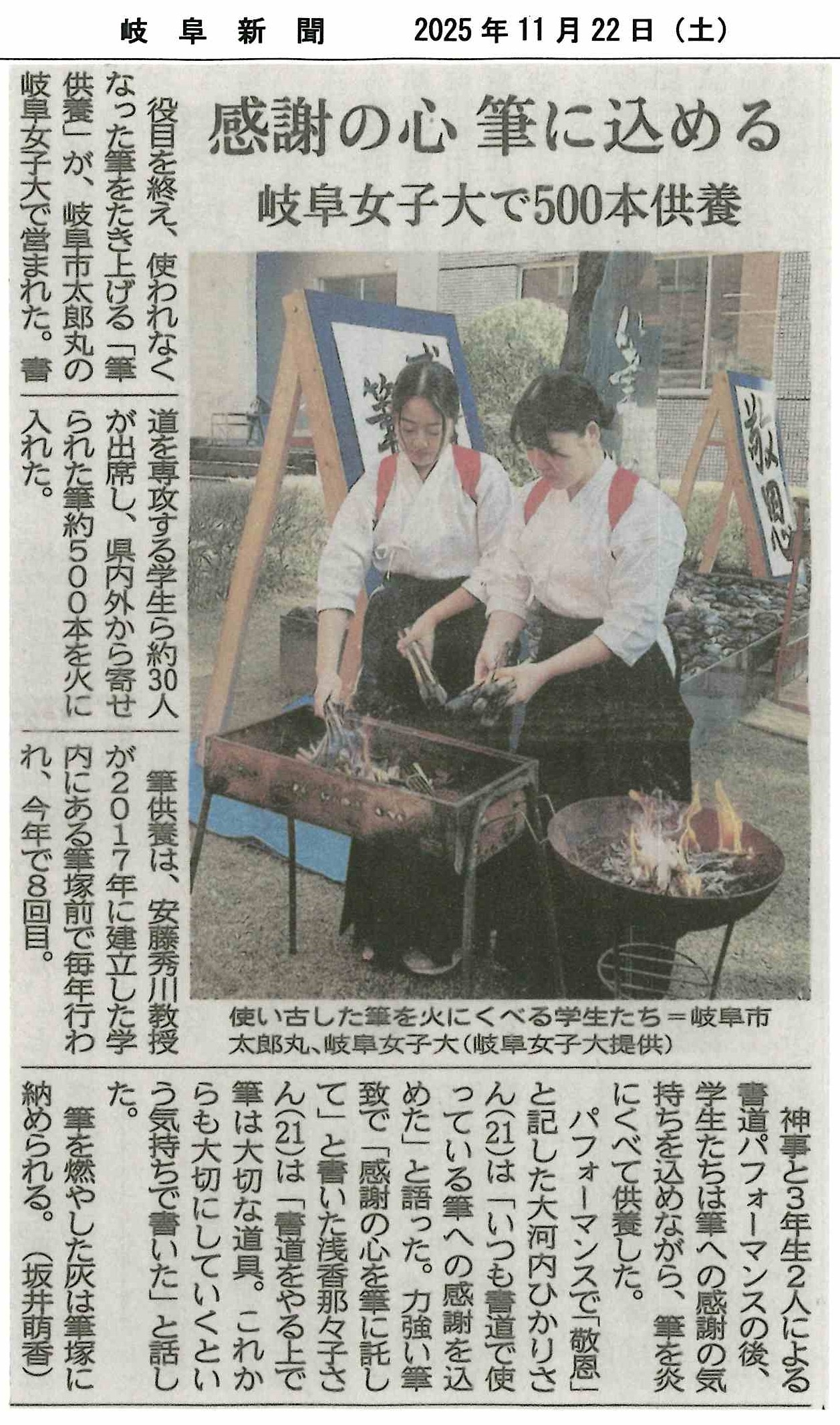 (岐阜新聞社提供/2025年11月22日岐阜新聞掲載記事)